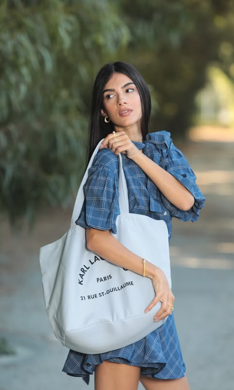 Η oversized tote τσάντα Karl Lagerfeld ισορροπεί ανάμεσα στη casual διάθεση και το statement στοιχείο, ενώ τα loafers με το μοντέρνο φινίρισμα ολοκληρώνουν το σύνολο με urban χαρακτήρα. Τα minimal χρυσά κοσμήματα δίνουν τη σωστή δόση λάμψης χωρίς να αποσπούν την προσοχή.