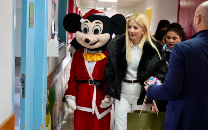 Σε χριστουγεννιάτικο κλίμα, η πρόεδρος της Βουλής και του ΔΗΣΥ επισκέφθηκε τα παιδιά που νοσηλεύονται, τις οικογένειές τους αλλά και το προσωπικό του τμήματος, στέλνοντας ένα ξεκάθαρο μήνυμα στήριξης και παρουσίας. Δίπλα της, μια γνώριμη φιγούρα που σκόρπισε χαμόγελα, ο Mickey Mouse , έκανε τη στιγμή ακόμα πιο φωτεινή για τους μικρούς ασθενείς.