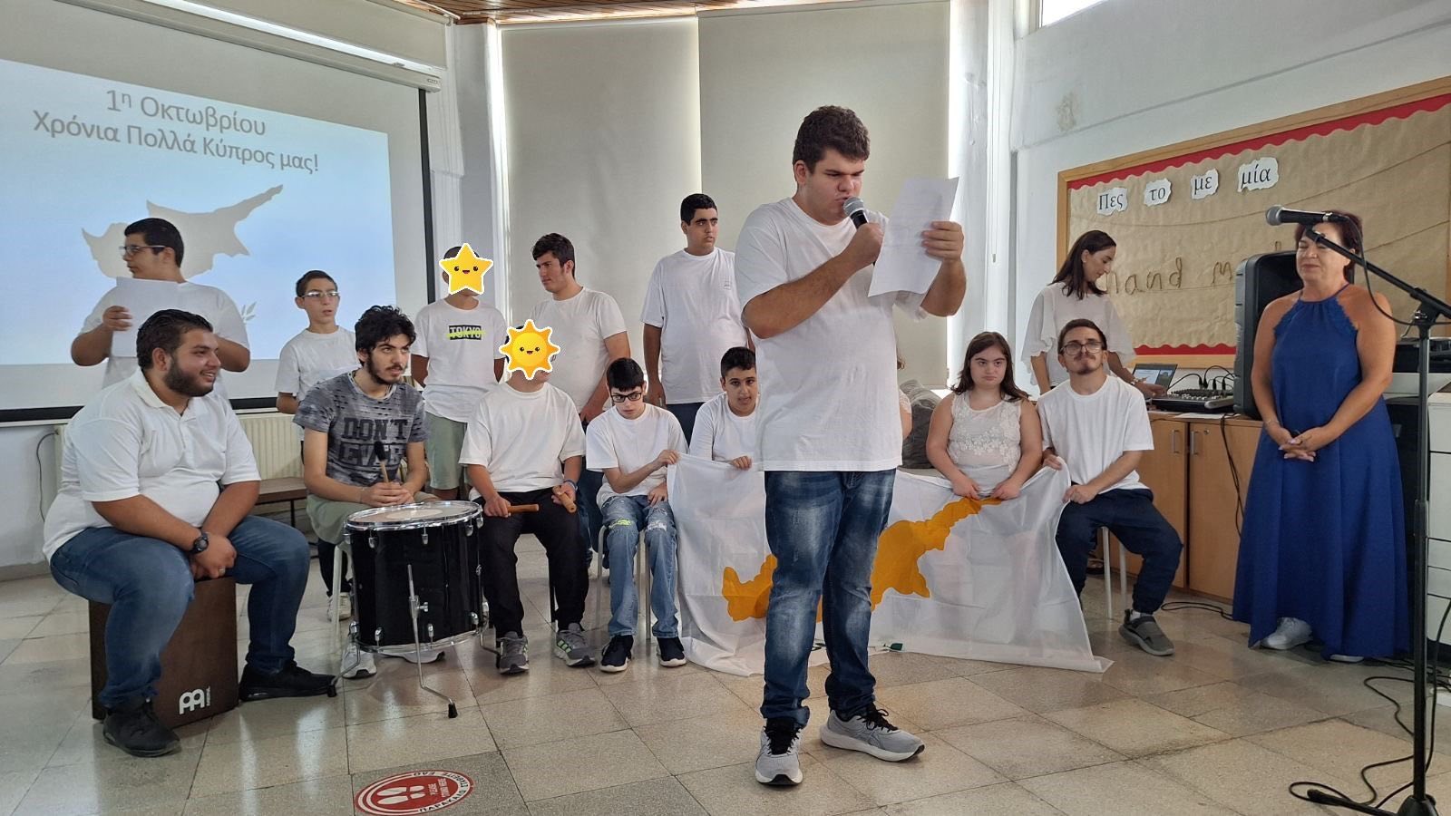 Με ποίηση, τραγούδια και χορό, οι μαθητές του Ειδικού Σχολείου «Άγιος Σπυρίδωνας» στη Λάρνακα τίμησαν την 1η Οκτωβρίου, στέλνοντας μήνυμα ενότητας και αγάπης για την πατρίδα.