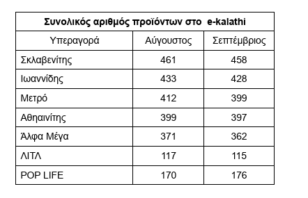 Αξιοσημείωτο είναι πως σε αλυσίδες όπως οι ΛΙΤΛ και Pop Life, τα διαθέσιμα προϊόντα στο e-kalathi είναι σαφώς λιγότερα, περιορίζοντας έτσι τις επιλογές του καταναλωτή σε σύγκριση με άλλες υπεραγορές.