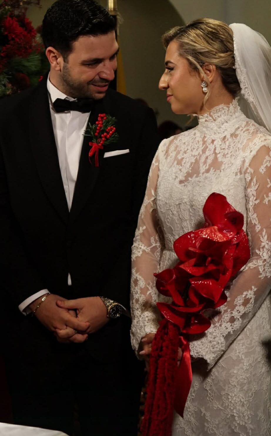 Η επιλογή κόκκινων anthurium ως bridal bouquet, σε ακανόνιστο, almost conceptual σχήμα, ήταν η fashion πινελιά που έκλεψε τα φλας και απέδειξε πως το στιλ βρίσκεται στις λεπτομέρειες.