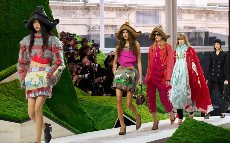 Το σκηνικό της επίδειξης, στην Cour Carrée du Louvre του Louvre Museum, μετατράπηκε σε ένα φουτουριστικό τοπίο εμπνευσμένο από τη φύση. Ο σκηνογράφος Jeremy Hindle δημιούργησε μια «νεο-φύση», όπου το φυσικό και το τεχνητό συνυπάρχουν. Μέσα σε αυτό το περιβάλλον, τα μοντέλα κινούνταν σαν σε έναν ζωντανό πίνακα, μια σύγχρονη αλληγορία που συνδύαζε τη μόδα με τη φαντασία και την επιστημονική φαντασία.