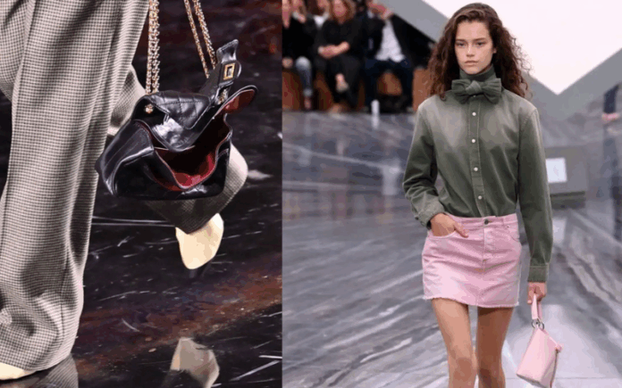 Η Fendi πρότεινε μια νέα εκδοχή της Peekaboo με μόνο έναν ιμάντα και λαμπερές πούλιες στο εσωτερικό, ενώ η Loewe παρουσίασε τις Amazona 180 χωρίς φερμουάρ, αφήνοντάς τες να κινούνται ελεύθερα με τον ρυθμό της πασαρέλας.