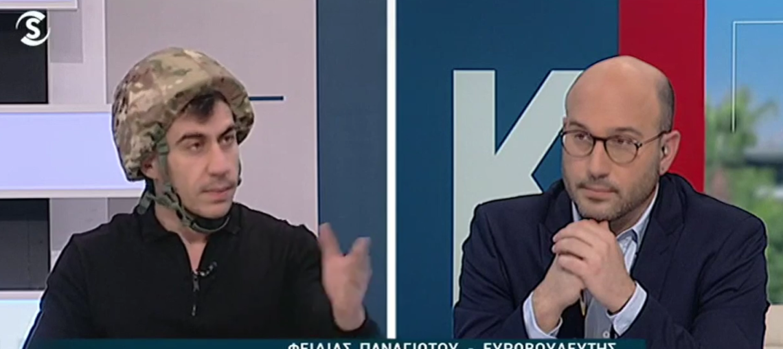 Με στρατιωτικό κράνος εμφανίστηκε ο Φειδίας Παναγιώτου στην εκπομπή «Μεσημέρι και κάτι» ανακοινώνοντας την υποψηφιότητα του στις Βουλευτικές με το κόμμα του “Αμεση Δημοκρατία”.