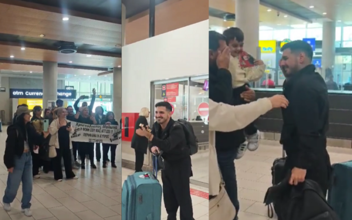 Ο Χριστόδουλος Μυλωνάς, προσγειώθηκε από Αθήνα στη Λάρνακα με φίλους και οικογένεια να του επιφυλάσσουν μια όμορφη υποδοχή στο αεροδρόμιο.