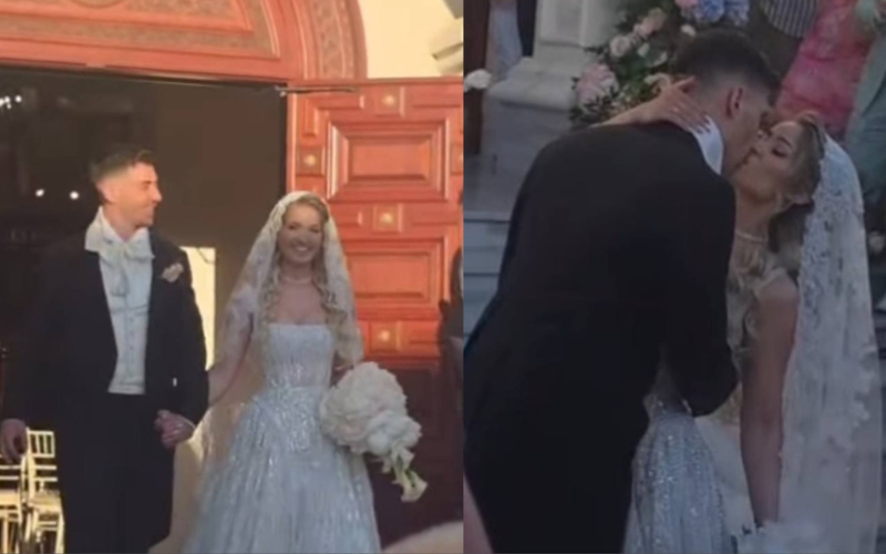 Ο γαμπρός έφτασε στην εκκλησία συνοδευόμενος από την οικογένειά του, ενώ η νύφη έκανε την εμφάνισή της λίγο αργότερα, εντυπωσιάζοντας με το κομψό, πριγκιπικό νυφικό της.
