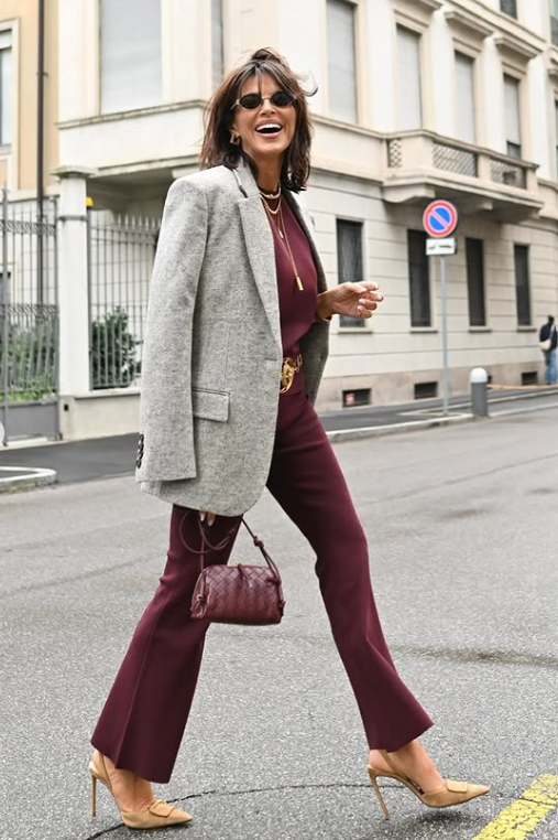 Η Ραμόνα Φίλιπ, η καταξιωμένη σχεδιάστρια μόδας, αποδεικνύει για ακόμη μια φορά γιατί θεωρείται μια από τις πιο κομψές παρουσίες της Κύπρου. Στο street style της ξεχωρίζει το statement σύνολο σε βαθύ μπορντό, το οποίο συνδυάζει με γκρι oversized σακάκι για μια δυναμική αλλά ταυτόχρονα chic εμφάνιση.