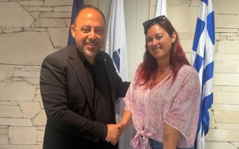 Ο Δήμαρχος Παραλιμνίου – Δερύνειας κ. Γιώργος Νικολέττος συναντήθηκε πρόσφατα με την κ. Amanda Dandy, ξένη κάτοικο του Δήμου, με αφορμή το τατουάζ που χάραξε στον καρπό της με το λογότυπο του Δήμου Παραλιμνίου – Δερύνειας.